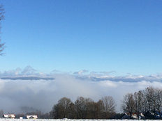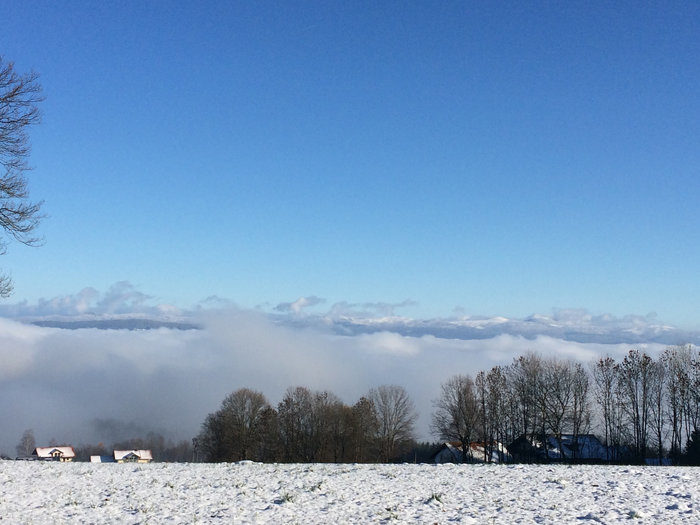 Blick von Hochstraß auf den hinteren Bay. Wald. Ein Genuss mit der "Schneewolke" über Viechtach. Eine Winterlandschaft im November wie sonst nur im Februar. Da kann der Nikolaus kommen.