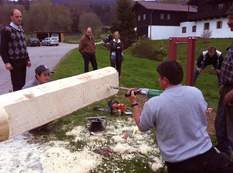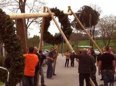 Um 19 Uhr begann nach dem Schmücken und anbringen der Bänder das aufstellen des Maibaums. Kurz vor 21 Uhr war der Maibaum fest in seiner Führung aufgestellt. Hurra. Der erste Maibaum seit 60 Jahren im Ortskern. Bisher stand er in Rettenbach 1. Willkommen in der Mitte des Lebens. DANKE